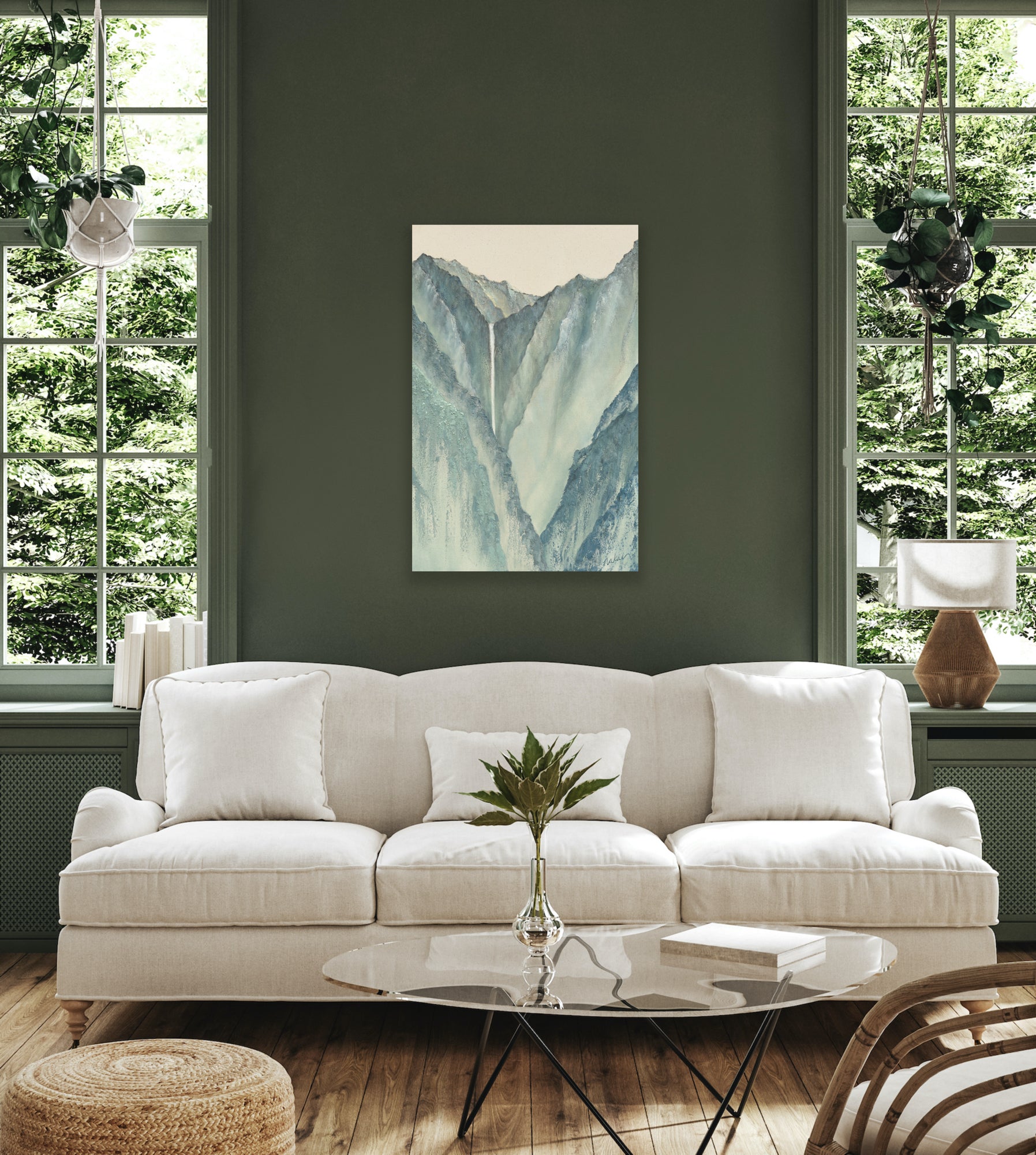 Ideal for those seeking a moment of respite or a grounding presence within their space, Iao's Grace serves as a daily encouragement to nurture well-being and emotional balance. It’s a visual embrace, capturing the grace found in nature’s quiet strength and the comfort that arises when we listen to what our feelings truly need.